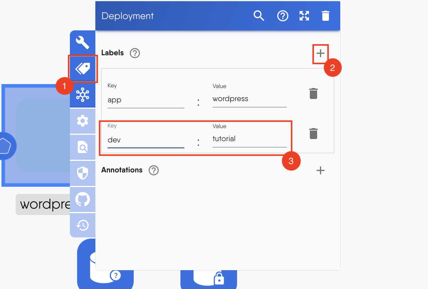 You can also choose to use the existing label, app:wordpress, but a new one, dev:tutorial, is recommended for this tutorial to prevent your resources from getting mixed up with others in the public playground cluster.